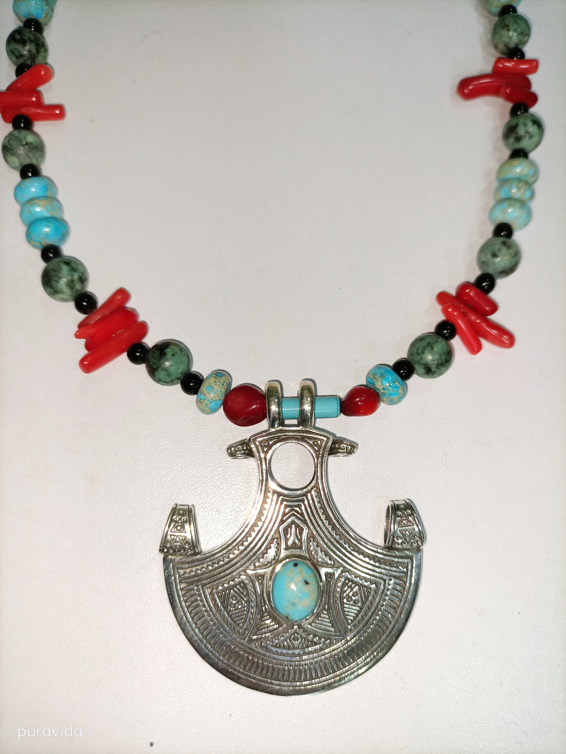 COLLAR EXCLUSIVO TURQUESA Y CORAL NT/KR-23-AN